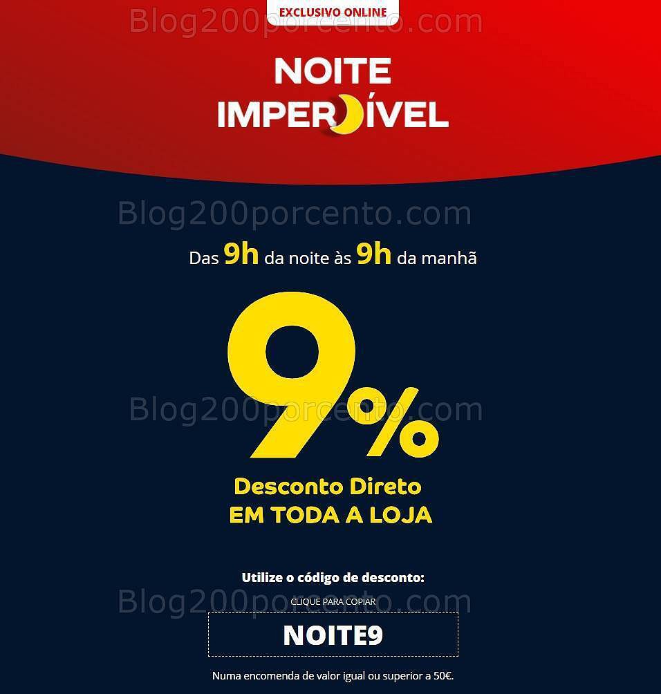 9% desconto direto em toda a loja com mediante utilização do código de desconto NOITE9.