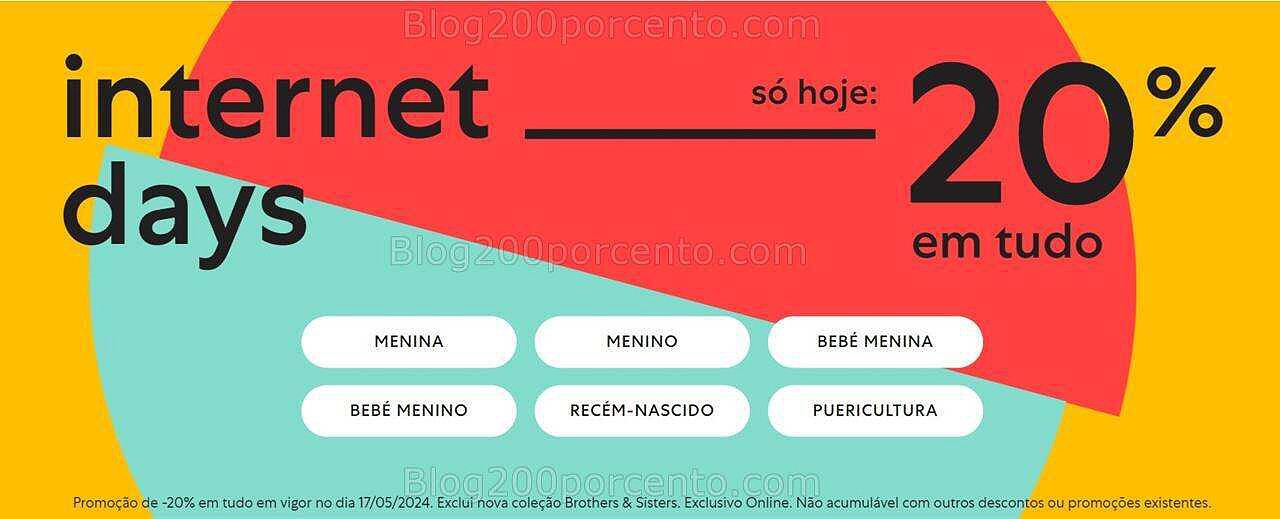 Promoção de -20% em tudo em vigor no dia 17/05/2024.