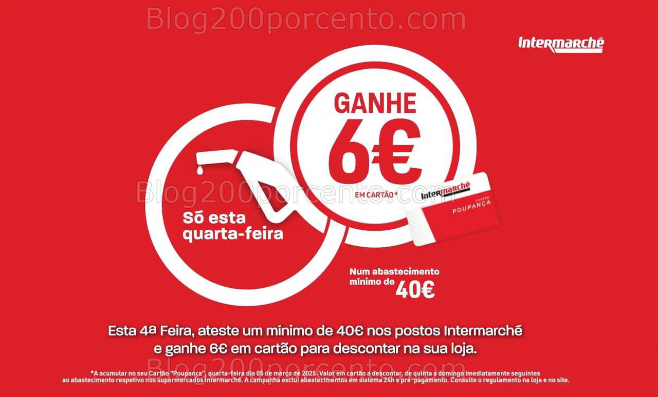 Ao abastecer um mínimo de 40€ nos postos Intermarché, ganham 6€ em cartão para descontar na loja. 💳