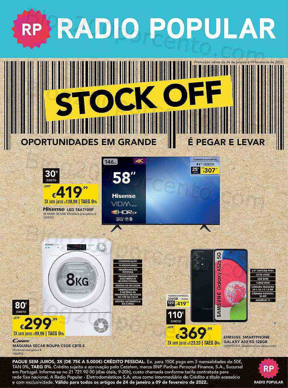 Antevisão Folheto RADIO POPULAR Stock Off Promoções de 24 janeiro a 9 fevereiro,