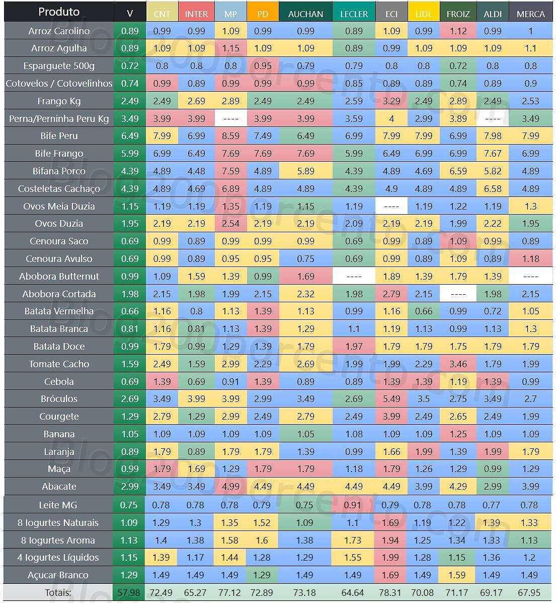 COMPARANDO - Alguns dos Produtos Mais Consumidos em 11 Supermercados* - 27 outubro,