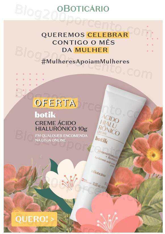 Mês da Mulher O BOTICÁRIO Oferta Creme Ácido Hialurónico*,