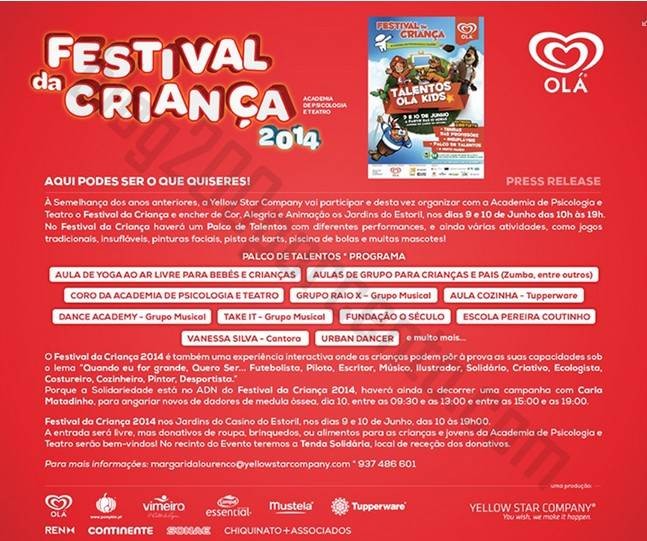 Festival da Criança 2014 dias 9 e 10 junho,