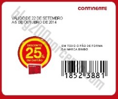 Acumulação 50% + 25% CONTINENTE apenas dia 22 setembro, Bimbo,
