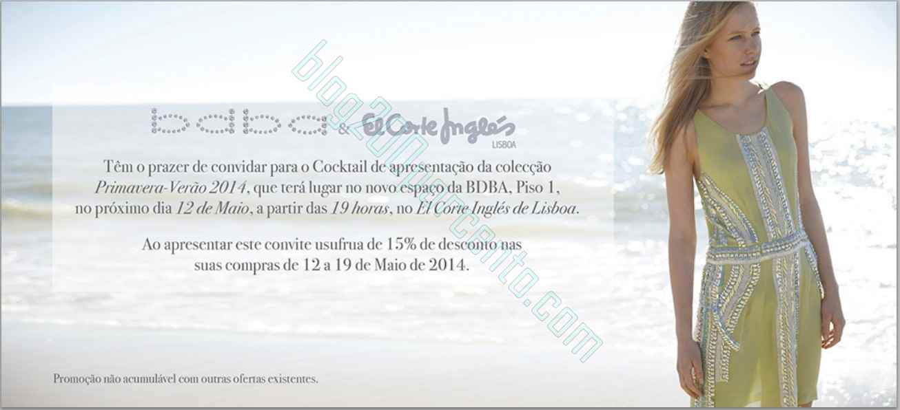 Convite com vale de 15% desconto | EL CORTE INGLÉS | dia 12 maio, a partir das 19 horas,
